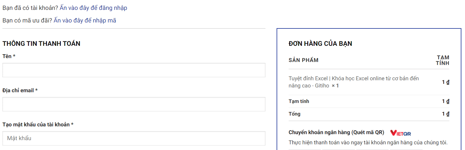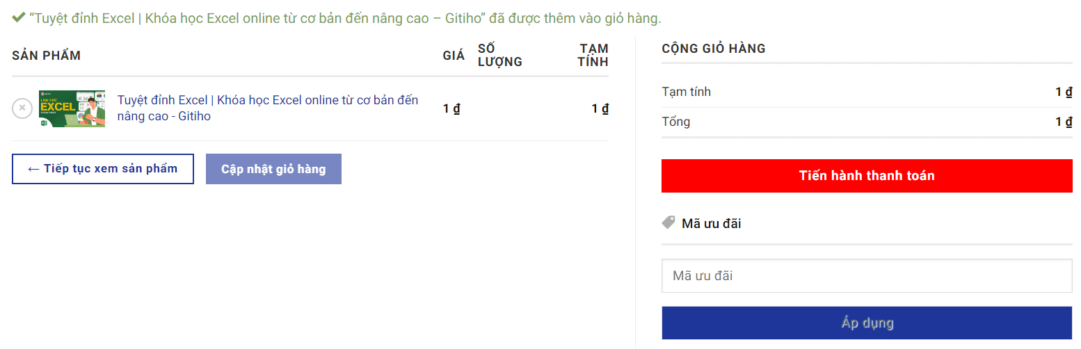 Bước 3 : Kiểm tra thông tin khóa học và chọn “TIẾN HÀNH THANH TOÁN”