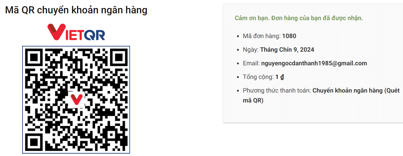 Bước 5 : Thanh toán theo thông tin mã QR hoặc số tài khoản hiển thị